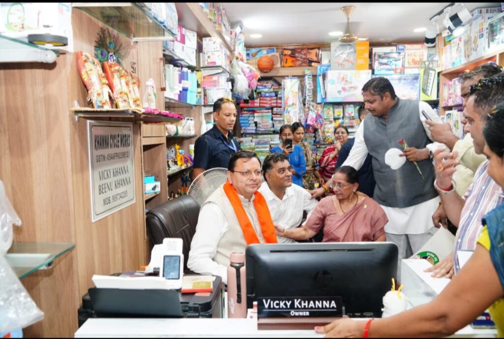 मुख्यमंत्री ने बड़ी संख्या में जनता से मुलाकात कर उनको घटे हुए ’ नेक्स्ट जनरेशन जी.एस.टी’ के बारे में जानकारी दी। उन्होंने कहा प्रधानमंत्री श्री नरेंद्र मोदी के नेतृत्व में केंद्र सरकार ने आम जनता को राहत पहुंचाने के लिए कई आवश्यक उत्पादों और सेवाओं पर जी.एस.टी स्लैब में कमी की है। जिसका सीधा लाभ देश के आम जनता को मिलेगा। मुख्यमंत्री ने जनता से अधिक से अधिक स्वदेशी एवं स्थानीय उत्पादों की खरीददारी करने का आग्रह किया। उन्होंने कहा कि स्थानीय उत्पादों को बढ़ावा देने से हमारे कुटीर उद्योग, स्थानीय कारोबारियों को प्रोत्साहन मिलेगा। इससे प्रदेश एवं देश की अर्थव्यवस्था भी मजबूत होगी। उन्होंने कहा जब हम अपने स्थानीय उत्पादों को प्राथमिकता देंगे, तभी हमारे ग्रामीण एवं शहरी उद्यमी सशक्त होंगे और आत्मनिर्भर भारत के संकल्प को गति मिलेगी। मुख्यमंत्री ने कहा कि सभी ने स्थानीय और स्वदेशी उत्पादों को अपनाकर समाज और प्रदेश के विकास में योगदान देना है। मुख्यमंत्री श्री धामी ने कहा कि “प्रधानमंत्री नरेंद्र मोदी के नेतृत्व में देश में आर्थिक सुधार और जनकल्याण एक साथ चल रहे हैं। जीएसटी दरों में कमी से हर वर्ग को राहत मिली है गृहिणियों से लेकर छोटे व्यापारियों तक, हर कोई इससे लाभान्वित हो रहा है।“