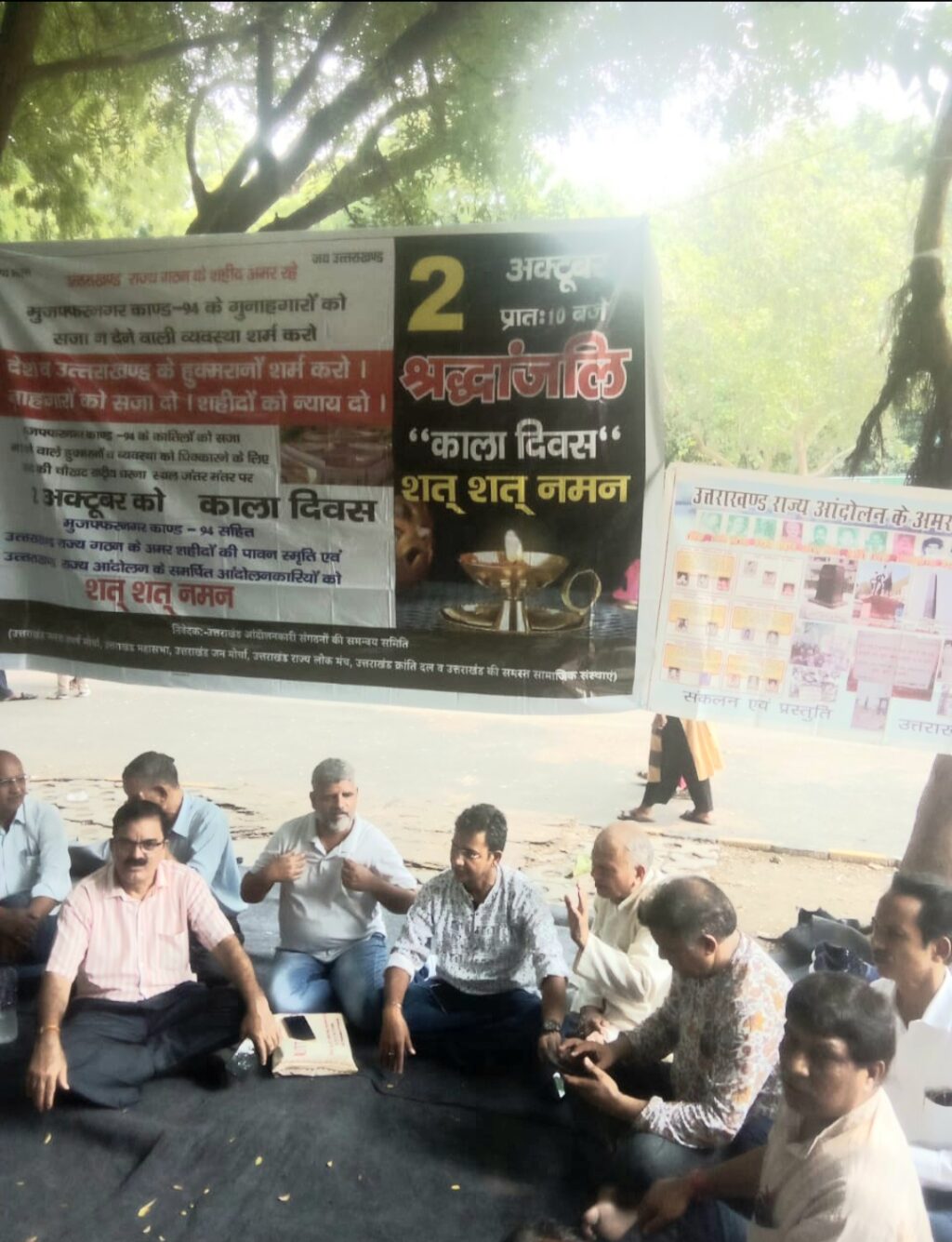राष्ट्रीय धरना स्थल जंतर मंतर पर 1994 मुजफ्फरनगर कांड के विरोध में आंदोलनकारियों ने मनाया काला दिवस