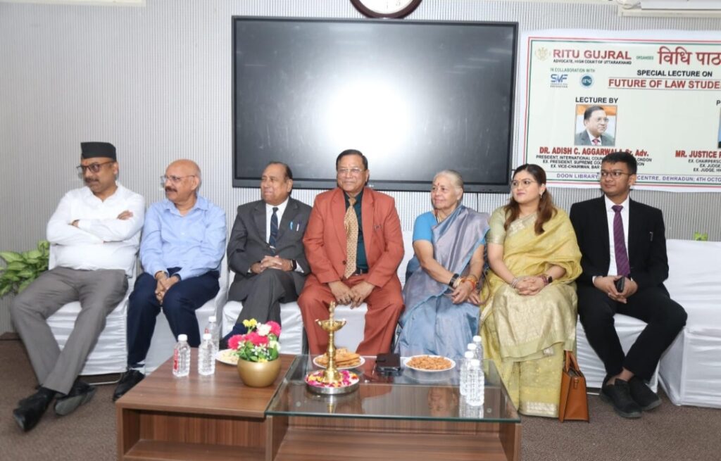 देहरादून । “भविष्य के विधि छात्र” विषय पर एक विशेष व्याख्यान का आयोजन दून पुस्तकालय एवं अनुसंधान केंद्र, लैंसडाउन चौक में अधिवक्ता ऋतु गुजराल ने किया। इस अवसर पर मुख्य वक्ता के रूप में देश के प्रख्यात विधिवेत्ता, वरिष्ठ अधिवक्ता डॉ. (अधि.) आदिश सी. अग्रवाल उपस्थित रहे, जो अंतरराष्ट्रीय न्यायविद परिषद के अध्यक्ष, अखिल भारतीय बार संघ के अध्यक्ष तथा सर्वोच्च न्यायालय बार संघ के पूर्व अध्यक्ष हैं।