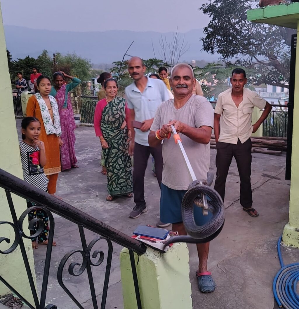 छह फुट लंबे कोबरा को रेस्क्यू कर जंगल में छोड़ा