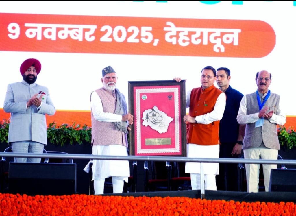 देहरादून । उत्तराखंड राज्य स्थापना दिवस, रजत जयंती पर्व के मुख्य समारोह में लिए रविवार को देहरादून पहुंचे प्रधानमंत्री नरेंद्र मोदी ने 8260 करोड़ रुपए की विकास परियोजनाओं का शिलान्यास-लोकार्पण किया। उन्होने उत्तराखंड की गत 25 वर्षों की उपलब्धियों की सराहना करते हुए, अगले 25 वर्षो के लिए रोडमैप के साथ आगे बढ़ने के लिए प्रेरित किया। एफआरआई परिसर में आयोजित समारोह में प्रधानमंत्री नरेंद्र मोदी ने गढ़वाली-कुमांऊनी में प्रदेशवासियों को राज्य स्थापना दिवस की बधाई देते हुए कहा कि, नौ नवंबर का दिन उत्तराखंड वासियों की लंबी तपस्या का फल है। ये दिन प्रत्येक उत्तराखंडवासी को गर्व का अहसास कराता है। प्रधानमंत्री ने राज्य आंदोलन के शहीदों को श्रद्धांजलि देने के साथ ही, सभी आंदोलनकारियों को भी नमन किया। प्रधानमंत्री श्री मोदी ने कहा कि 25 साल पहले केंद्र में अटल बिहारी वाजपेयी सरकार ने, जिन उम्मीदों, आकांक्षाओं के बीच उत्तराखंड राज्य का निर्माण किया आज वो सभी सपने पूरे हो रहे हैं। उन्होंने उत्तराखंड से अपने लगाव को व्यक्त करते हुए कहा कि, जब वो अपनी आध्यात्मिक यात्रा पर यहां आते थे तो पहाड़ों पर रहने वाले भाई -बहनों का संघर्ष और परिश्रम उन्हें प्रेरित करता था, यहां बिताए दिनों ने उन्हें उत्तराखंड की सामर्थ से परिचय कराया। इसी भरोसे के साथ उन्होंने बाबा केदार के दर्शन के बाद कहा था कि ये दशक उत्तराखंड का होगा। अब उनका ये भरोसा और भी दृढ़ हो गया है कि इस वक्त उत्तराखंड के उत्कर्ष का कालखंड चल रहा है।