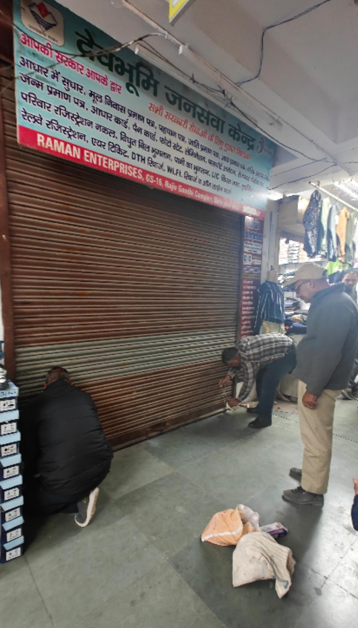 देहरादून । जिलाधिकारी सविन बंसल के निर्देश पर जिला प्रशासन की टीम ने तहसील परिसर अवस्थित रमन एन्टरप्राईजेज, सीएससी सेंटर में औचक निरीक्षण एवं छापेमारी की कार्रवाई की। यह कार्रवाई उपजिलाधिकारी कुमकुम जोशी  के नेतृत्व में की गई। जिला प्रशासन द्वारा अनियमितता पाए जाने पर सीएससी सेंटर को सील करते हुए केंद्र पर ताला जड़ दिया है। निरीक्षण के दौरान केंद्र पर अनियमिताएं पाई गई।