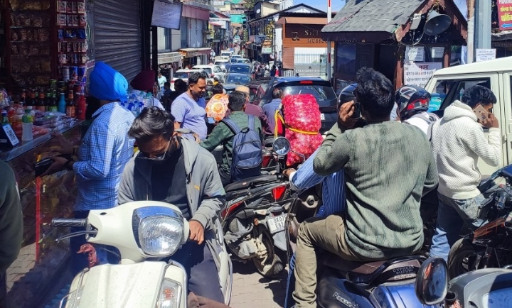 जाम के कारण पर्यटकों व स्थानीय लोगों को उठानी पड़ रही परेशानी