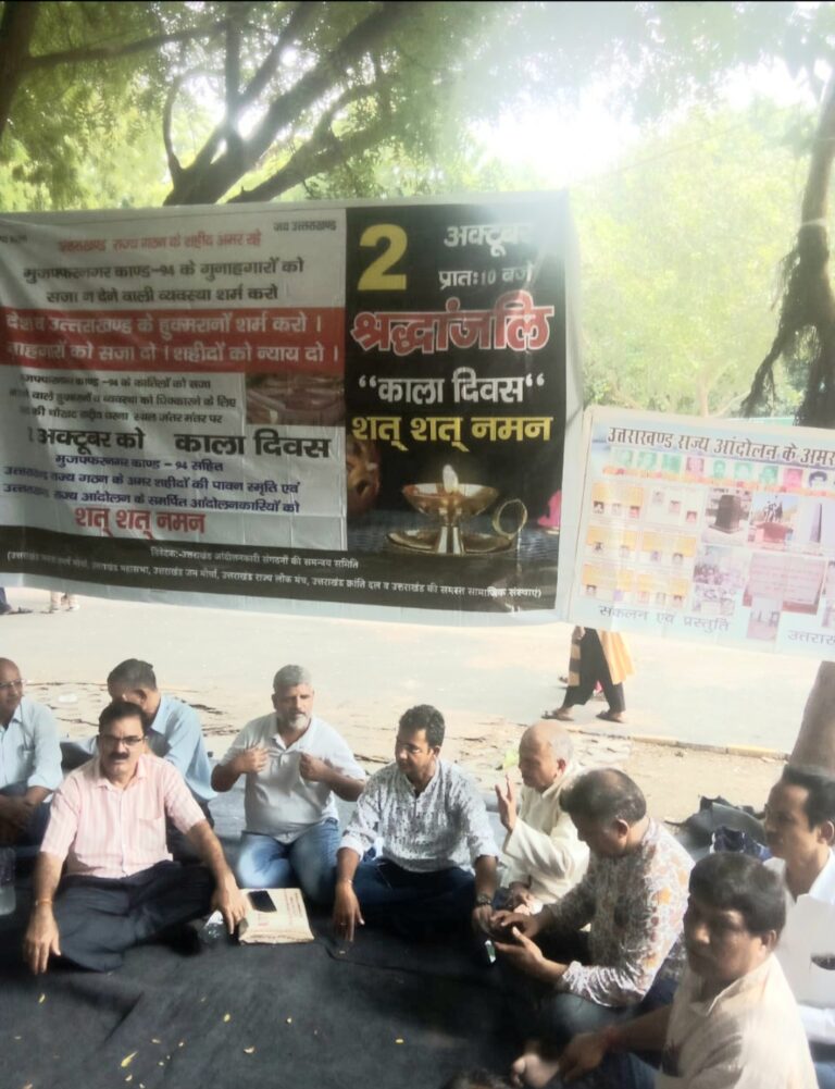 मुजफ्फर नगर कांड के शहीद अमर रहे, के नारों से गूंज उठा धरना स्थल..... दिल्ली। 2अक्टूबर 1994 को पृथक राज्य...