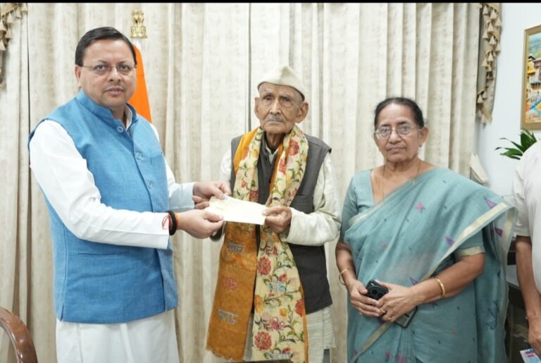 देहरादून । मुख्यमंत्री पुष्कर सिंह धामी से शनिवार को मुख्यमंत्री आवास में 96 वर्ष के पंडितवाड़ी, देहरादून निवासी जबर सिंह...