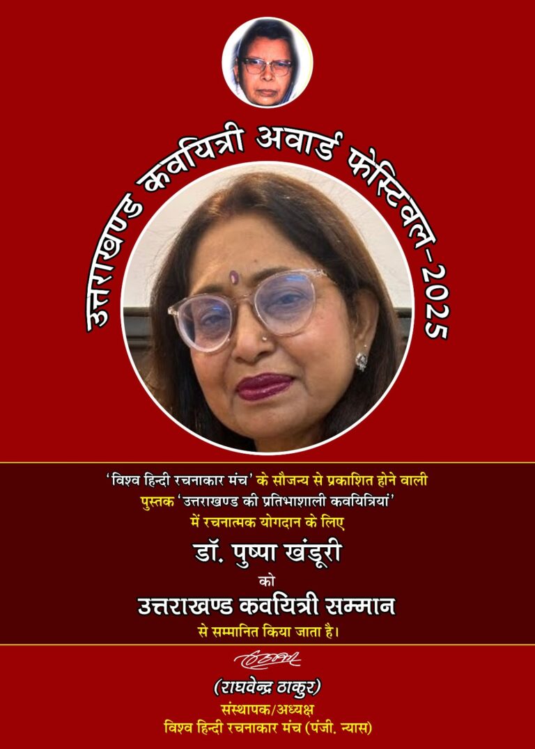 देहरादून। हिंदी साहित्य छायावादी कवित्रियों परम्पराओ कों आगे ले जाने के प्रयास में जुटी डा. पुष्पा खंडूरी युवाओं कवियों के...