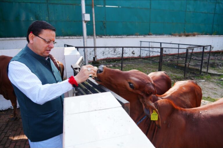 देहरादून । मुख्यमंत्री पुष्कर सिंह धामी ने बुधवार को मुख्यमंत्री आवास स्थित गौशाला में गोवर्धन पूजा के अवसर पर गौ...